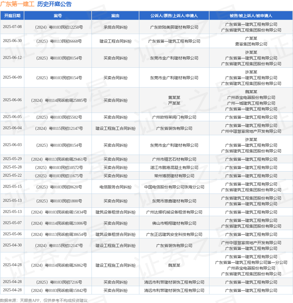 本站消息,根据天眼查APP显示,近日公布了一则广东省第一建筑工程有限公司作为被告/被上诉人的开庭公告,详细内容如下: