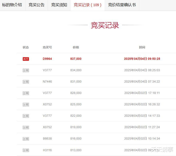 此次拍卖,车辆不带牌拍卖,目前这辆雷克萨斯存在违章记录没有处理,但是具体违章记录不详,需要竞得者自己去了解,有关违章记录需要竞得者承担处理。车辆的评估价是56.95万元,起拍价39.9万元。这么小的车龄,对于百万级别的豪车来说,这个起拍价确实低。拍卖开始后,也是吸引了多达31人报名竞拍。竞拍过程也是相当激烈,出现了多达109次加价,最终这辆豪华的雷克萨斯商务车以83.7万元高价成交,成交价比起拍价高出了43.8万元,溢价率110%。